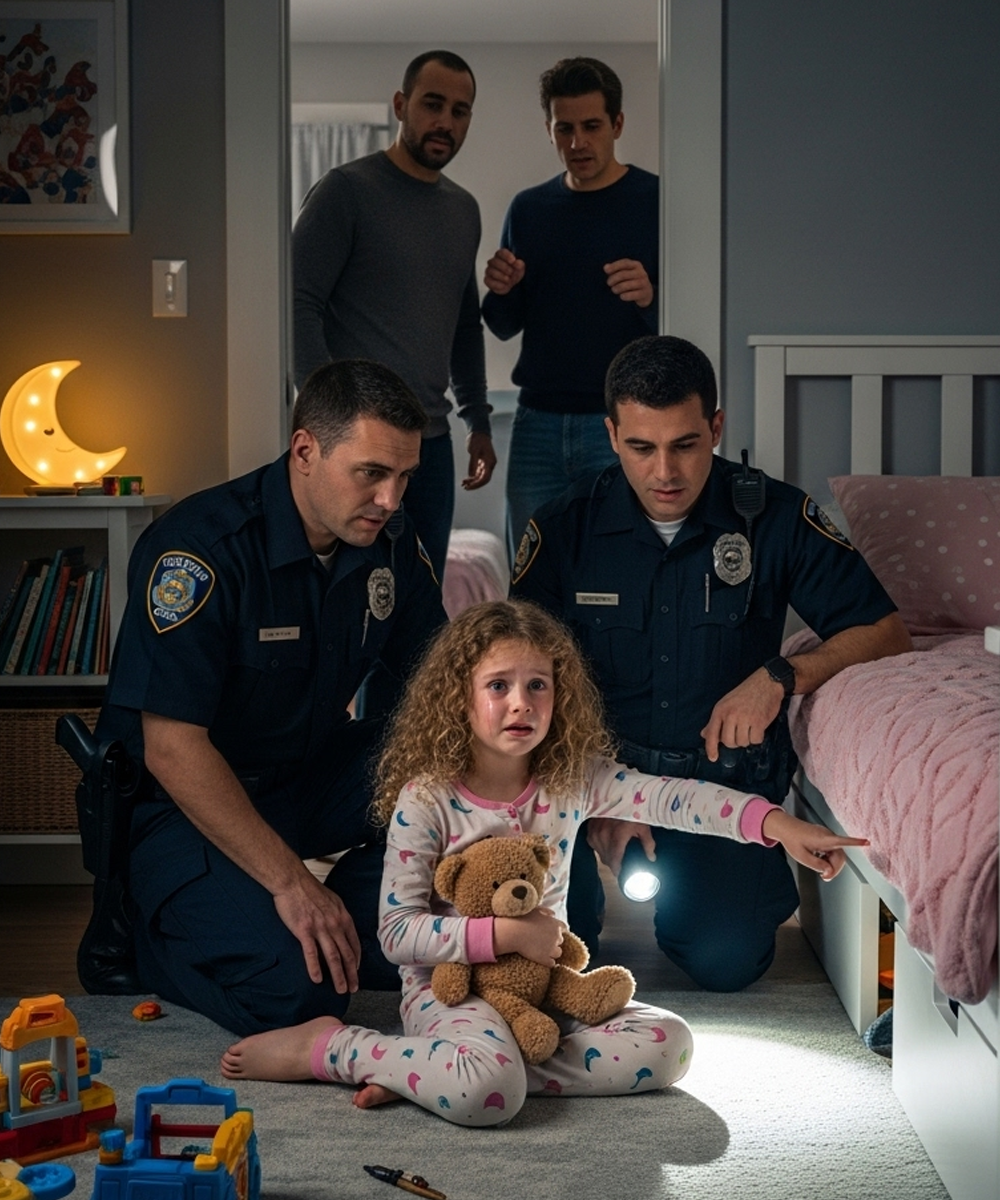 She didn’t run to the officers. She simply pointed to her neatly made bed, pink quilt folded with care.