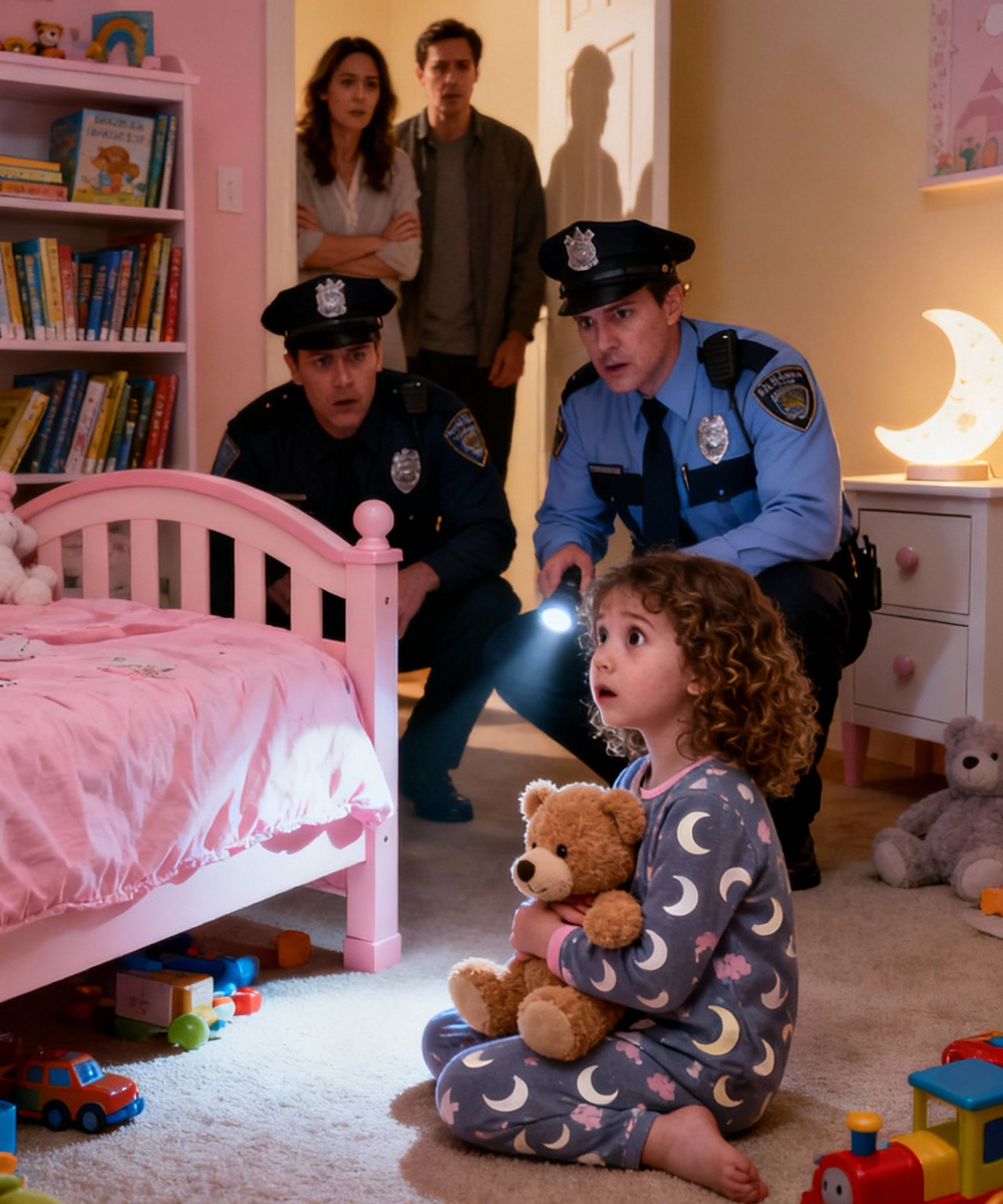 Officer Patel knelt, lifted the bed skirt, and swept his flashlight across dust, a stray crayon, a marble—nothing more.