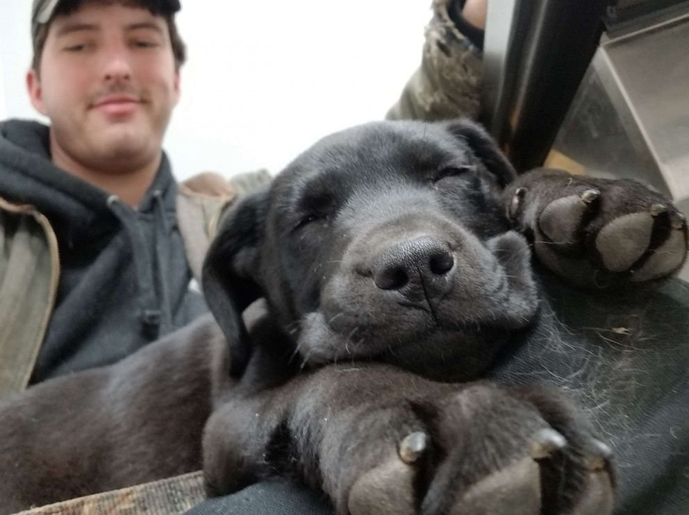 At just six weeks old, Emerson was rescued from a Florida shelter. The little black lab mix had endured seizures and battled a dangerous infection called canine parvovirus. After intensive care and recovery, he was transferred to Maine and put up for adoption.