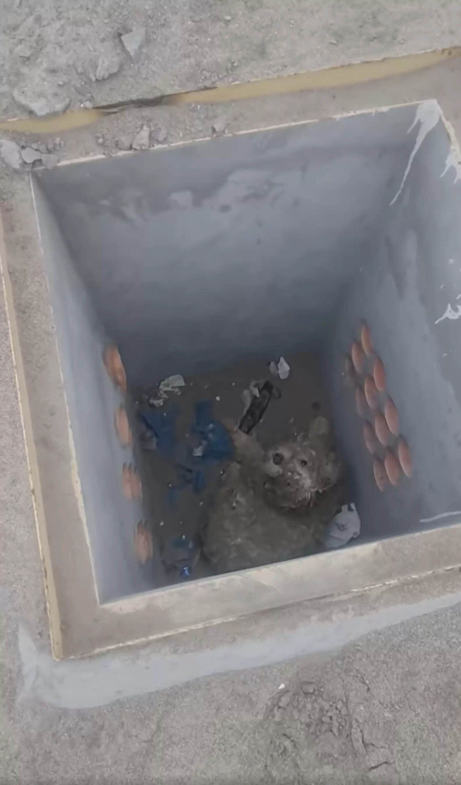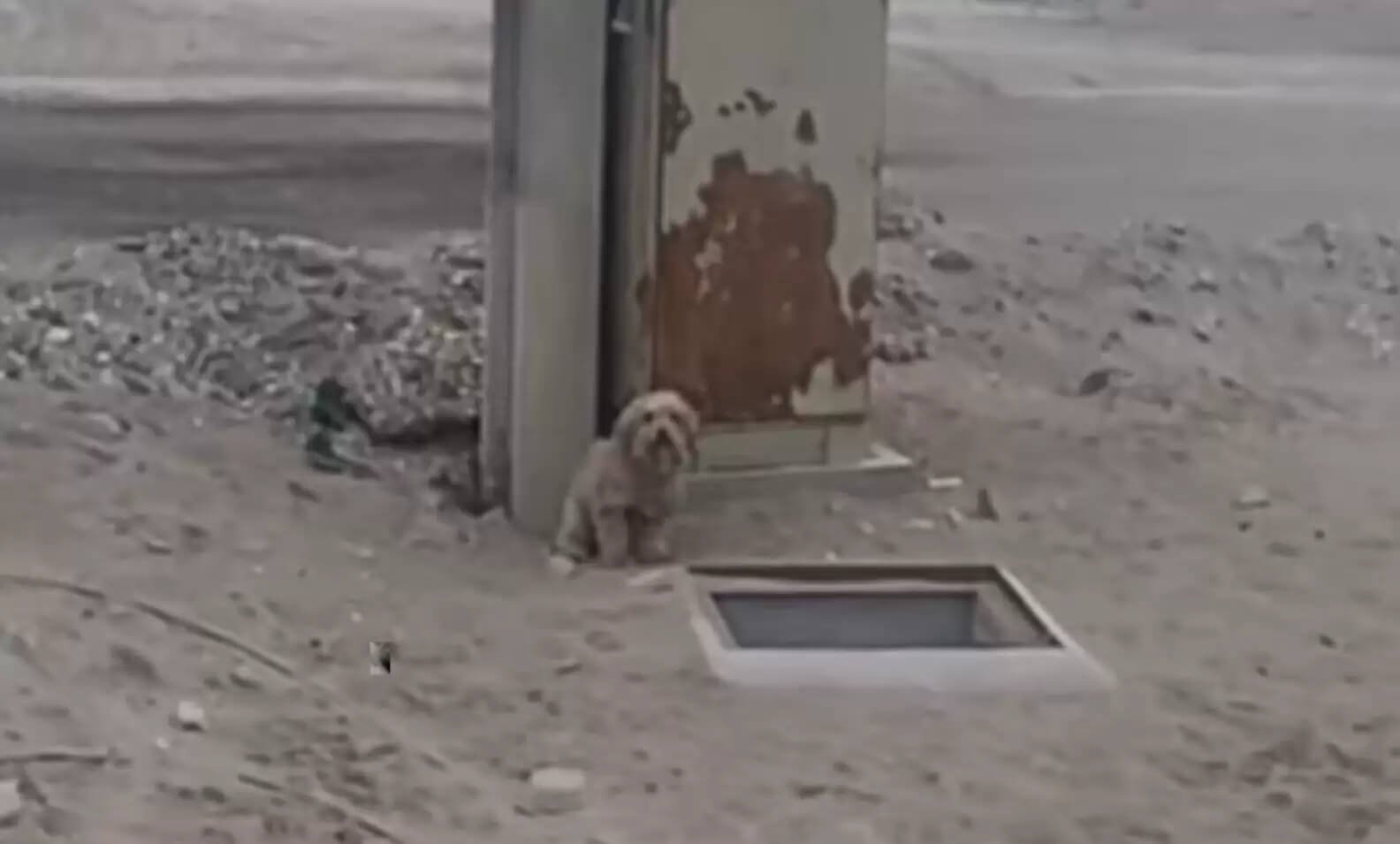 The spot where the abandoned puppy stood was marked with a number of deep open holes. Sadly, in one of them, there was another dog, trapped inside it.
