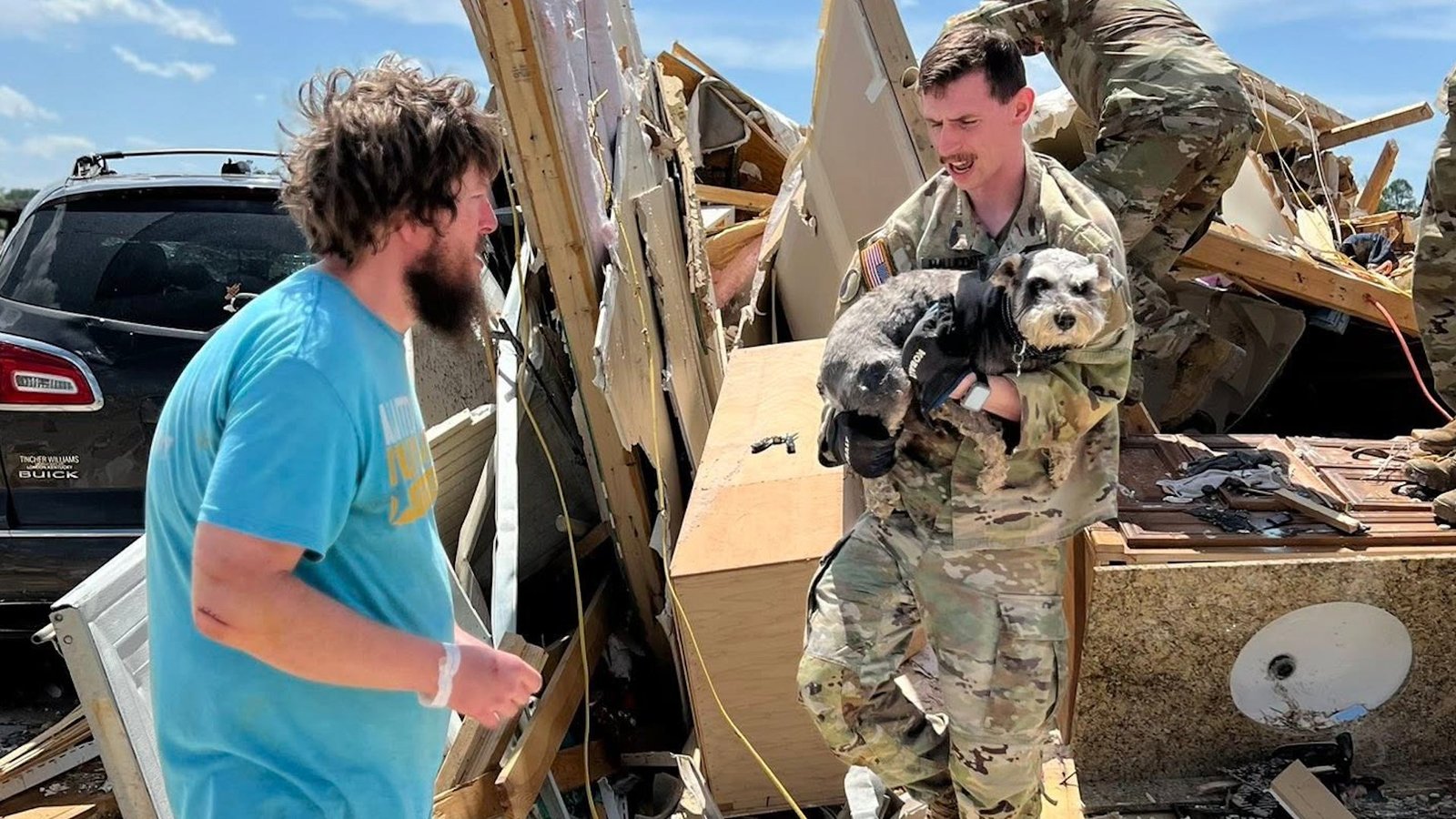 When he yanked the car door open, a blast of wind nearly knocked him over. The tornado had already torn through the area, leaving chaos in its wake. The officer scooped up his K9, shielding the dog with his own body as he braced against the storm.