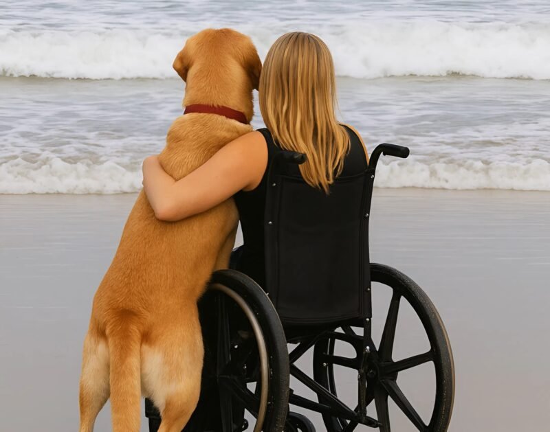 Only our dog remained. He seemed to understand everything — my silence, my tears, the weight of loss. Every morning, he wheeled beside me to the shore. I would sit and stare at the horizon, clutching his fur, imagining my husband’s voice carried by the wind. The ocean became both my torment and my comfort.