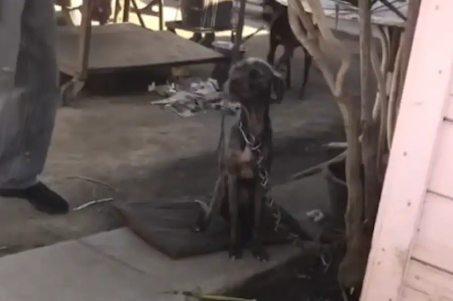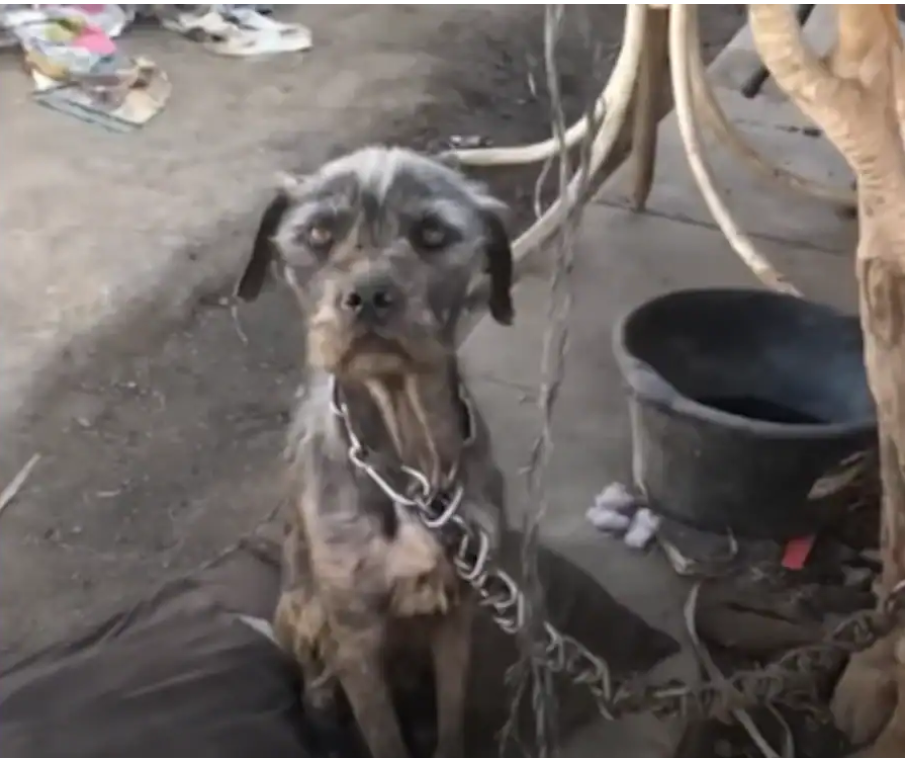 A mother dog was chained outside, her body painfully thin, exhaustion etched into every bone. Her ribs spoke louder than any cry she could have made.