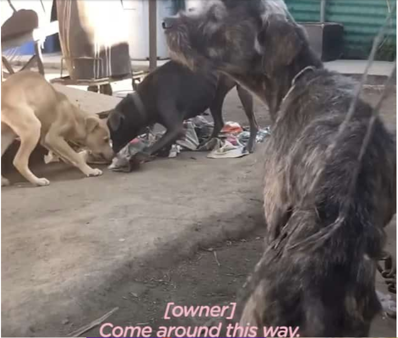 Then the man stopped and pointed to the chained dog.