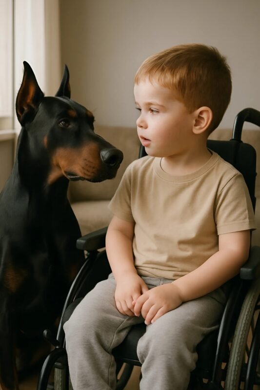 My husband and I were caught up with chores when we left our four-year-old, paralyzed son in the yard with our Doberman, Tara 😲. We never imagined what would happen just half an hour later…